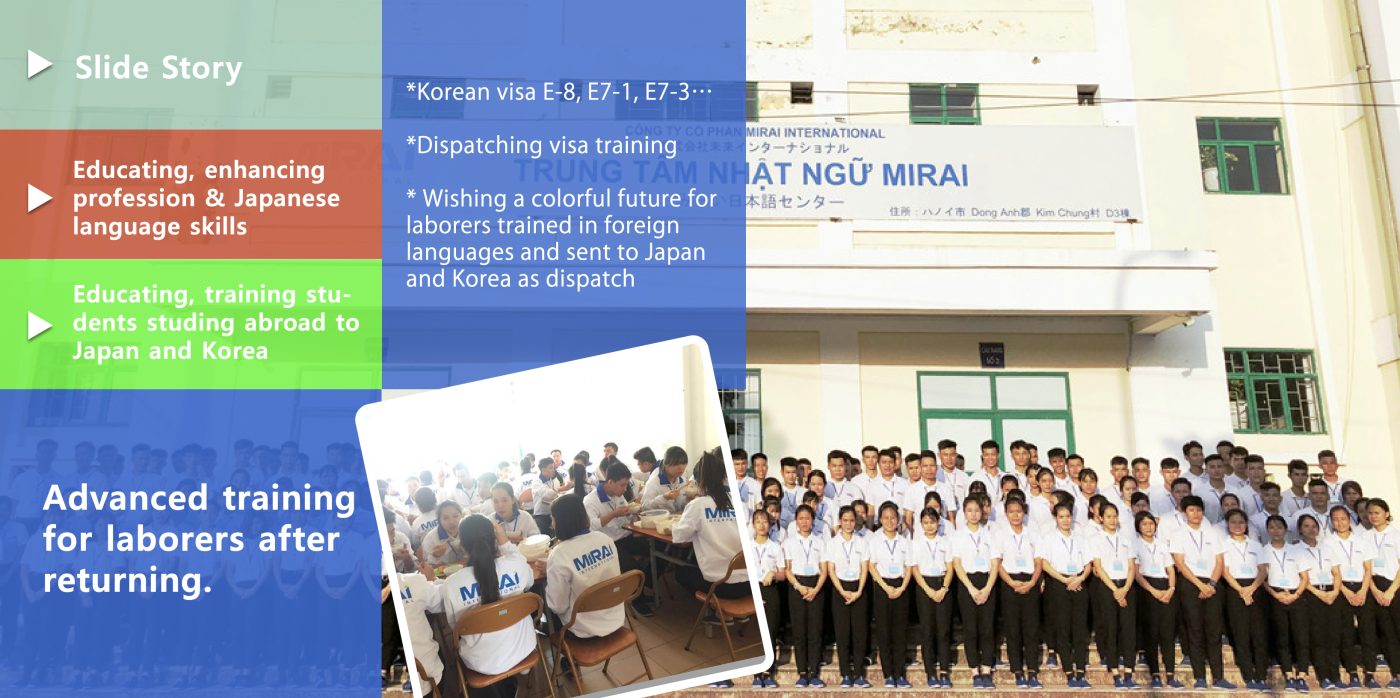 - Foreign language training and placement of Japanese trainees and Korean E-8, E7-1, and E7-3 visa laborers.